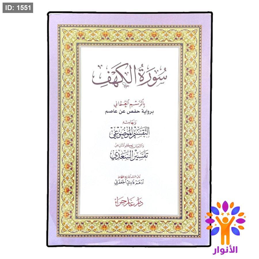 سورة الكهف بالرسم العثماني برواية حفص عن عاصم وبهامشه التقسيم الموضوعي والتبيان لكلام المنان من تفسير السعدي