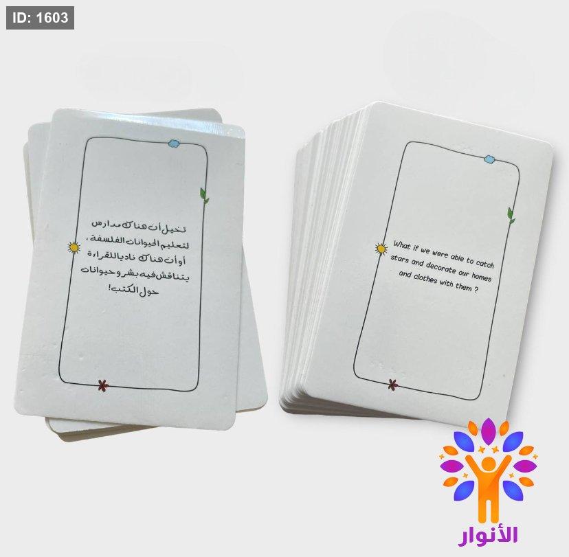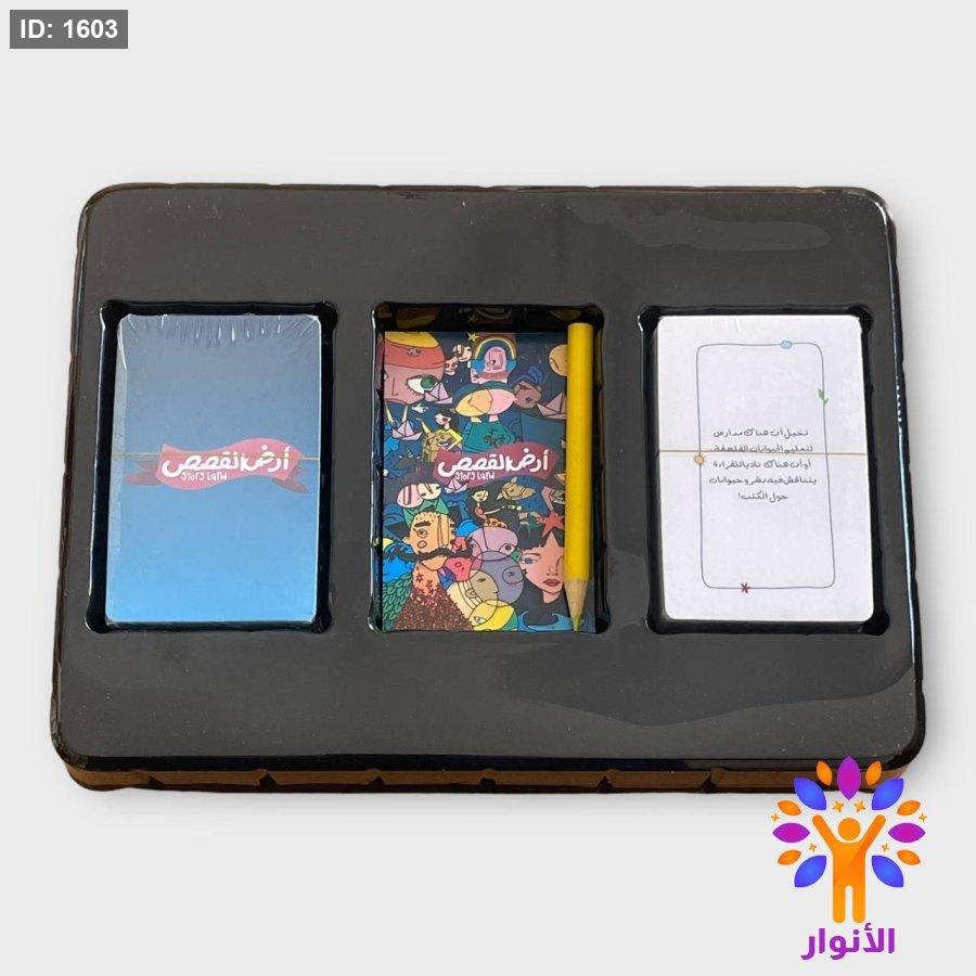 يحتوي على بطاقات الصور، وبطاقات "تخيل لو"، ودفتر صغير مع قلم.