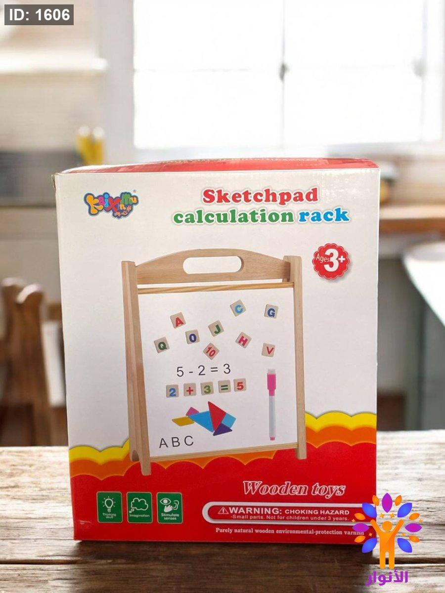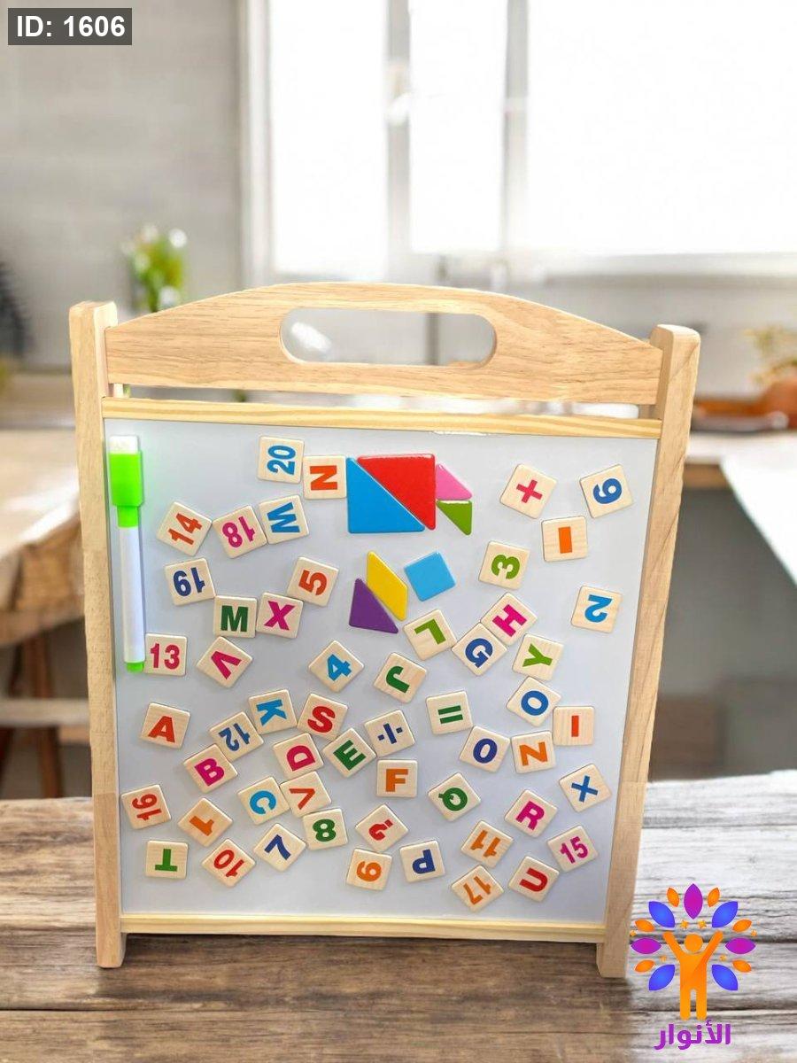 لوح وايت بورد +عداد 10 درجات + قطع مغناطيس حروف انجليزي وارقام واشارات حسابية واشكال هندسية + قلم .