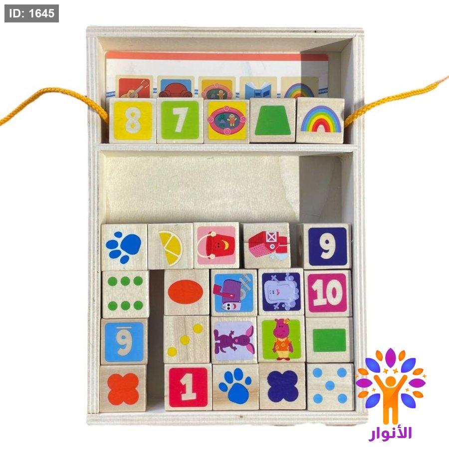 - يبدأون البحث عن كل صورة في البطاقة واحضار المكعب المطابق لها .