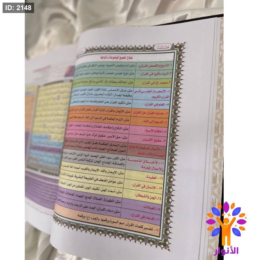 ١- تم عمل فهرسة باخر المصحف لموضوعات القران الكريم المختلفة مثل : قصص القران ، العبادات ، العقيدة ، احكام الاسرة ، الاعجاز العلمي ، الاخلاق ، الحقوق …