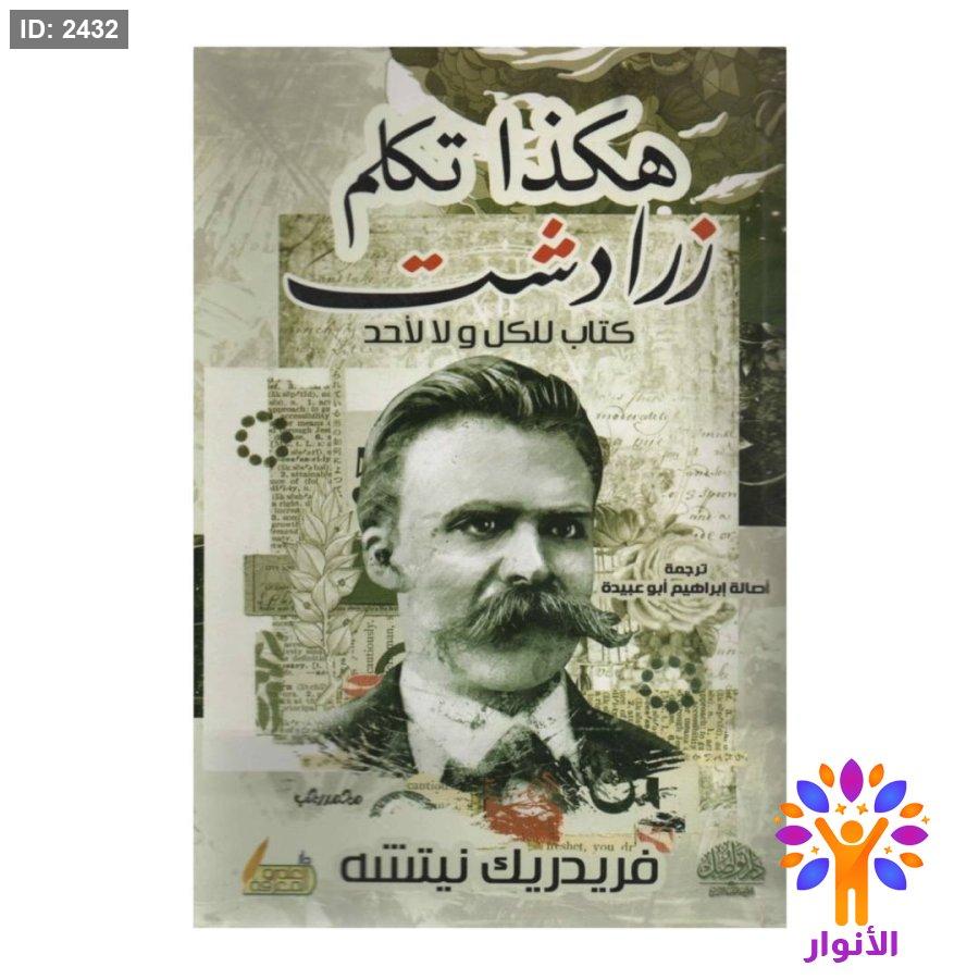 كتاب فلسفي يعرض فيه نيتشه أفكاره بأسلوب أدبي على لسان شخصية زرادشت، ويتناول موضوعات مثل إرادة القوة، والإنسان الأعلى، ونقد القيم والأخلاق التقليدية في المجتمع.