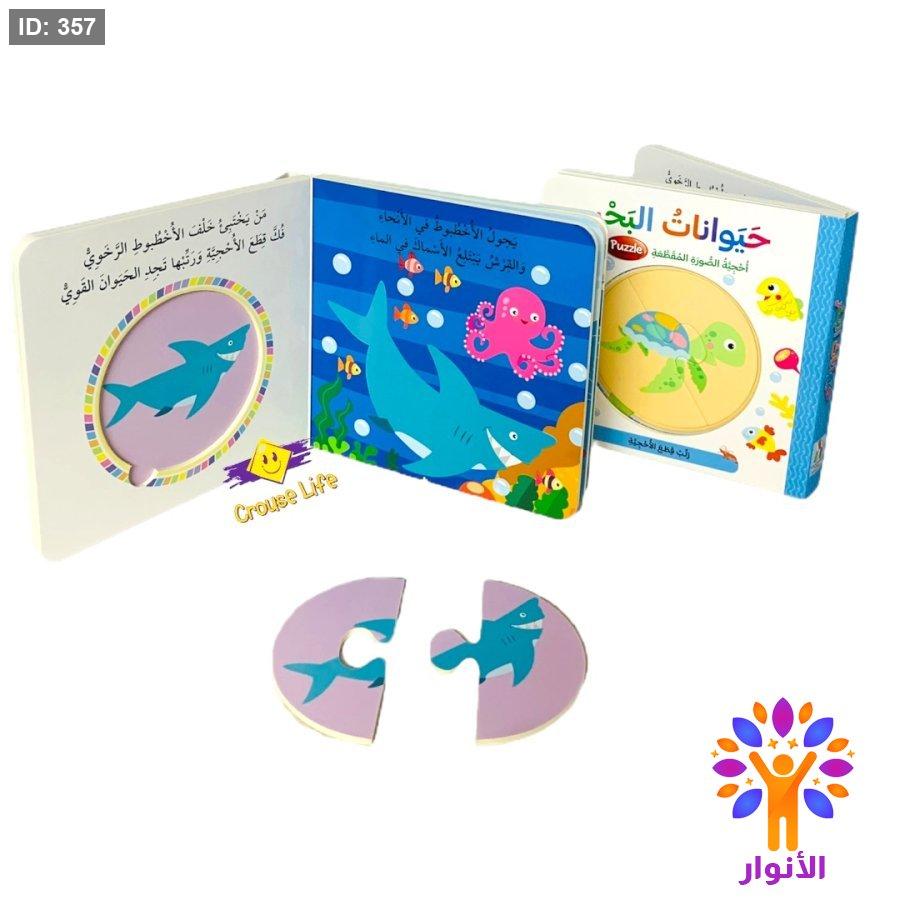 قصة ممتعة لذلك قررت التعرف على تنوع البحر المختلف من خلال قصة تفاعلية تحتوي في كل صفحة على بزل مكون من قطعتين .