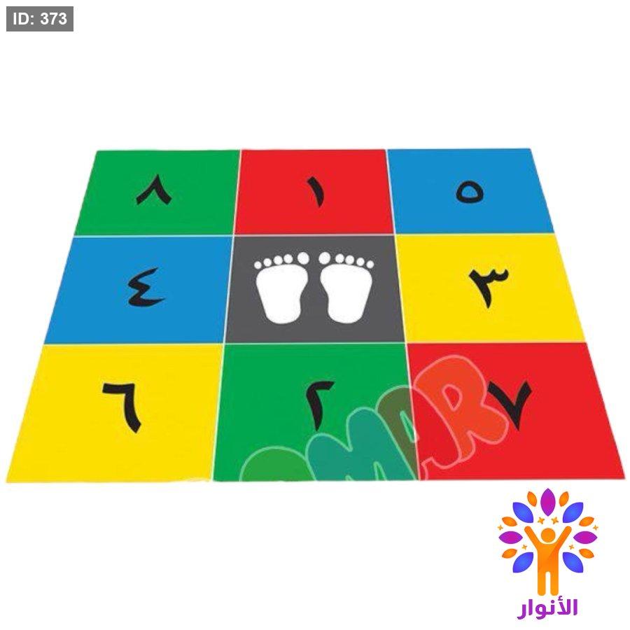 سجادة مكونة من 5 مربعات واحده لوقوف الطفل و 4 مربعات بأرقام متسلسلة ليقفز من بينها الطفل