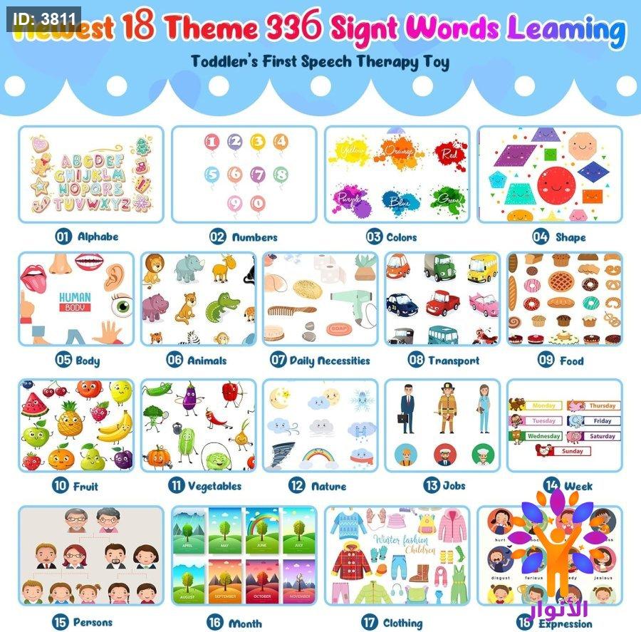 يتضمن 168 بطاقة فلاش على الوجهين مع 336 كلمة عبر 18 موضوعا.