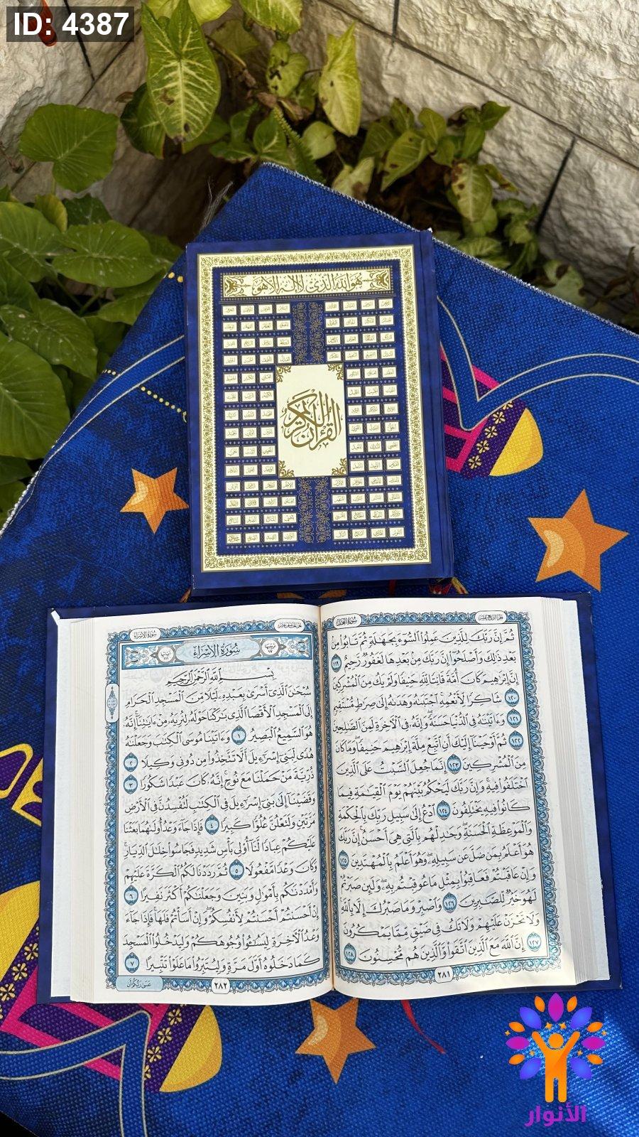 مصحف عادي - قياس وسط - 17*25 سم - ورق كريمي - 2 لون ازرق واسود - دار الاسلام